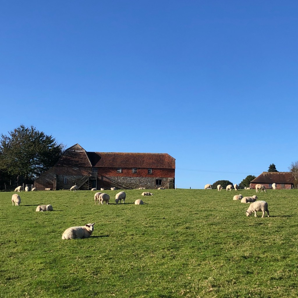 We had aimed to start the day’s walk earlier than we normally might and were on the route just after ten o’clock. After a short spell of road walking, the footpath appeared to the right which took us out into the edge of the countryside beyond, where we were immediately glad to have the coats, as the wind was indeed chilling. This first, short, off-road section turned out to be the muddiest of the day, which took us up a short and medium-steep slope, to a viewing point just outside the village of Winchelsea. From here we turned into the village centre itself, where we passed (I think) a McLaren sports car tucked lovingly away under a cover, whilst we looked hopefully for a public toilet as Beth was much indeed, and she is not one for ‘peeing in the wild’. Happily, Winchelsea delivered and after a quick comfort break, we were back underway and heading out of the village, where our efforts were rewarded by an encounter with a flock of Herdwick sheep, a very cute and cuddly looking breed hailing from the Lake District.