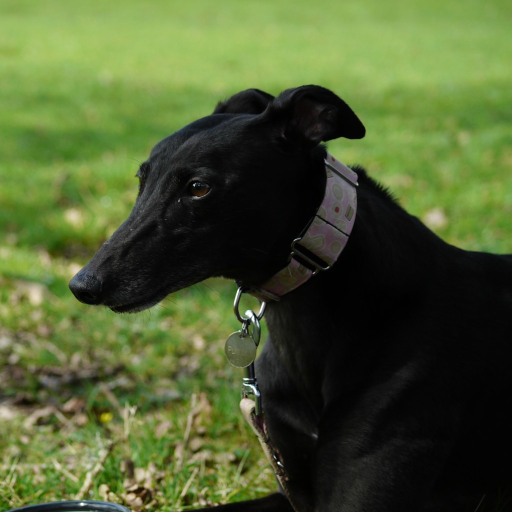 A couple of minutes on, and a footpath through the hedge led us out into the countryside. Despite the sunny spells we have been experiencing, it had certainly not yet been enough to dry up all of the mud, and so we sploshed through the first field, before entering the second. By now, the sun itself had made an appearance, and so we quickly removed coats (including Pumpkin’s) and set off into what now looked to be a perfect spring day. It was in this field that we discovered something else to add to the list of things our guest is scared of. As well as feathers, she is not very fond of large round bales of hay, one of which we passed closely, and she eyed it with great suspicion.