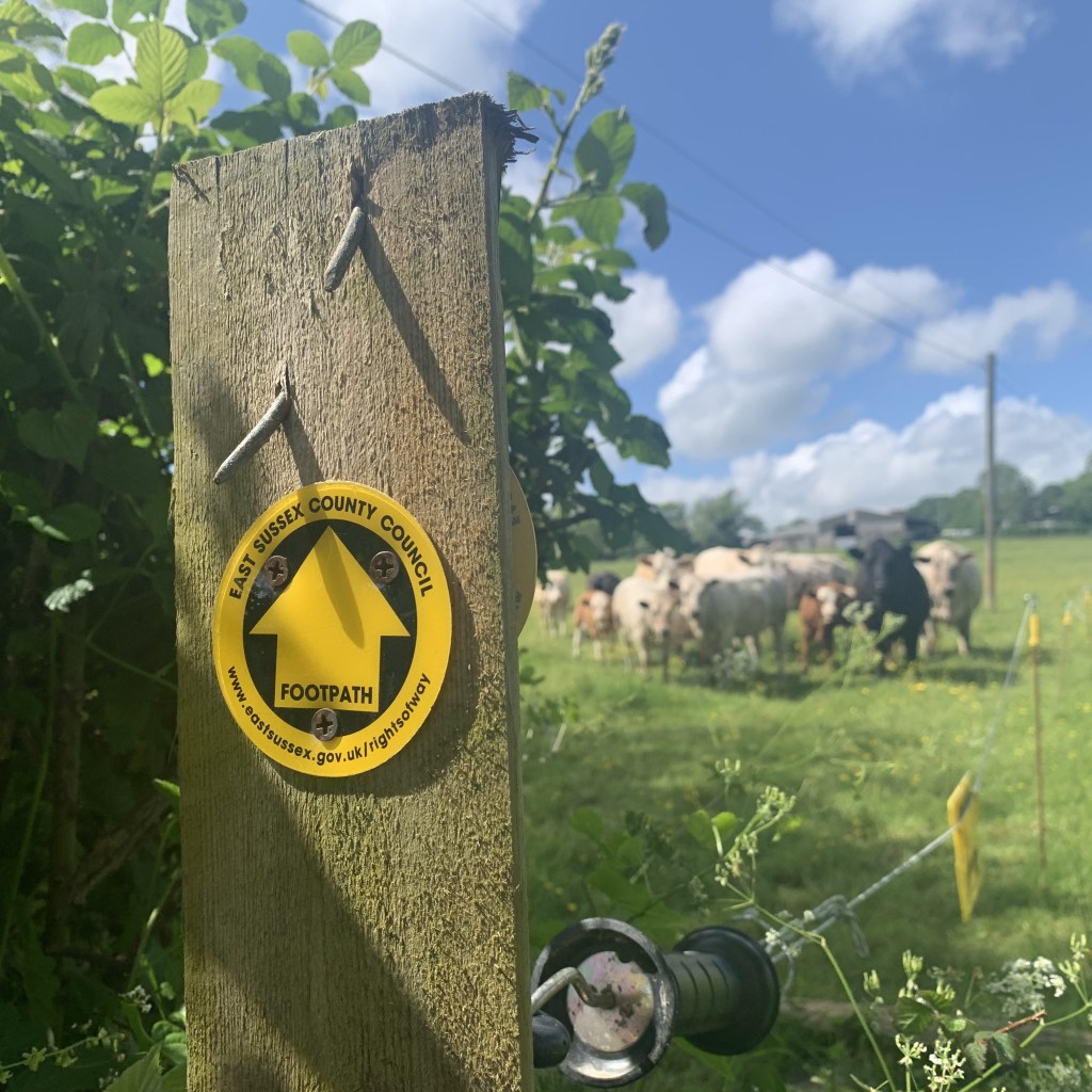 Setting off again, we ended up making the same mistake as last time, following a footpath marker down a driveway that led to precisely nowhere, before turning around and carrying on down the road to look for the correct route. Path found and we made our way out into the countryside, walking happily through a series of sunny, thick meadows of glowing buttercups. A simple, pleasant late May afternoon in East Sussex – what could possibly go wrong?