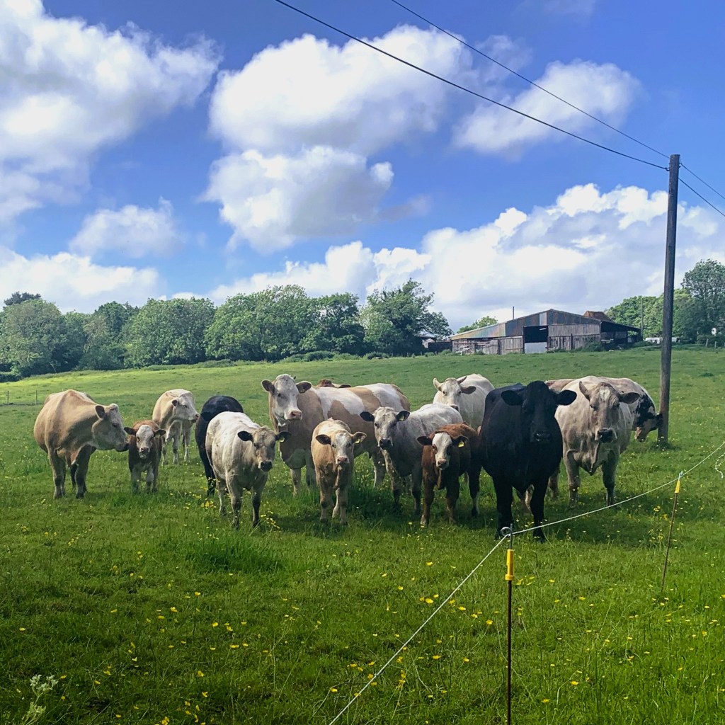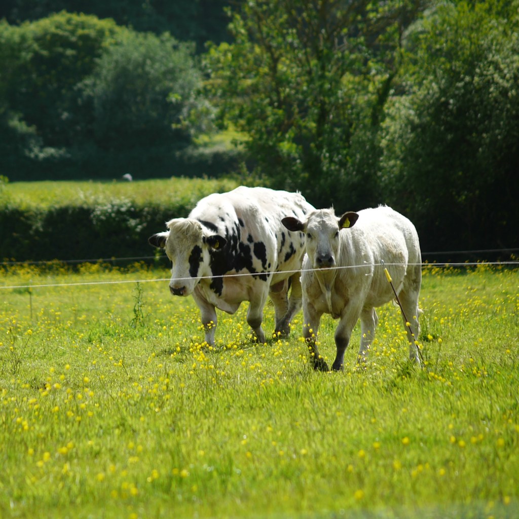 It was at this point, as we made our way up a farm track, that a herd of cows appeared in a field to our left, through which the day’s walk was set to lead us. “Those cows seem interested in us,” commented Beth. And so they were, staring straight at us, even from a distance. As we made our way into the field, I noted the electric fence (hopefully on) which created a strip of land for the footpath between it and the barbed wire fence on the other side. Walking steadily through the field, the cows continued to stare. Heart rates increased when we spotted a handful of calves amongst them – cows are notoriously protective of their young. A couple of protective mothers began mooing in our direction and worse, as the herd began to migrate toward us, I spotted a significantly beefier, more muscular individual amongst them – a bull. No warning signs I would like to add, and as the mooing mothers walked protectively toward us, I encouraged Beth to keep her eyes on the gate at the field’s edge as I monitored the cows coming ever closer on our right. The angry mooing continued and the cows drew nearer and nearer, and we were both relieved when we finally reached the security of the gate. We promptly made our way through and closed it sharply behind us, before turning to face the cattle, now just behind us. The large mothers had followed us all the way to the corner of the paddock, where they continued to yell, determined to see us off for good. The large bull, meanwhile, was stood at the back of the herd, absent-mindedly scratching his solid head on a telegraph pole, seemingly nowhere near as bothered by our presence as the mums, massive testis swinging freely in the sunshine.