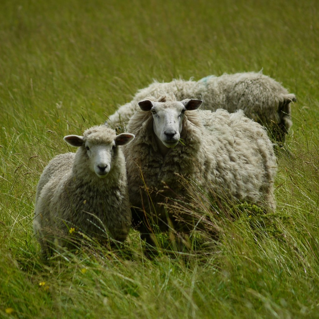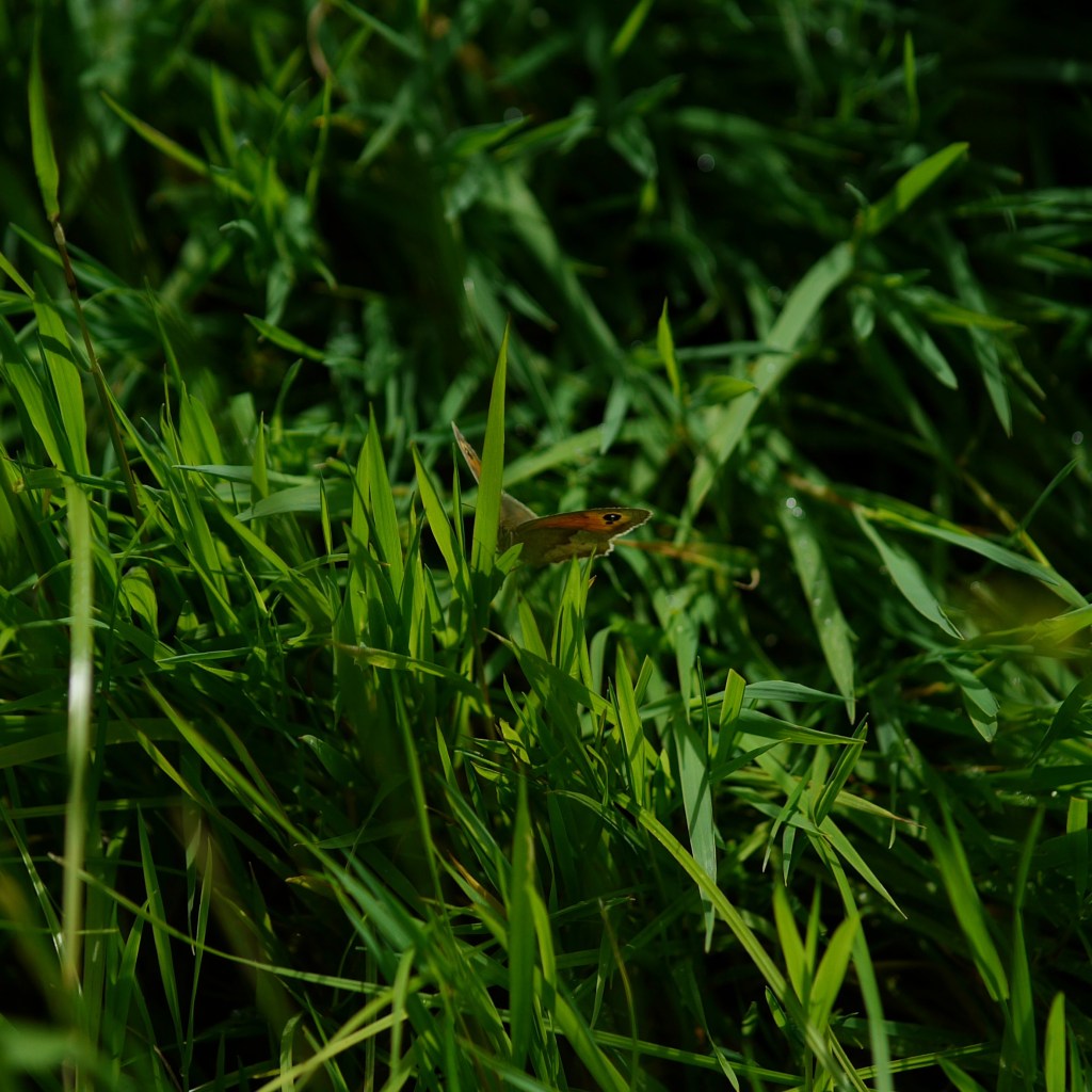 With a suddenly deeper sense of connection to everything, we continued through the last of the day’s many orchards, where I briefly went the wrong way and was saved by Beth (1-1), before descending down a steep field and through a short woodland path, before emerging onto a curious patch of marshy land. The elevated wooden trail led right through the middle and was lined with pretty, if a little spiky, tall flowers, many of which grew above head height. After this began the final couple of long sheep fields, where butterflies continued to serenade our journey. Many of the field’s residents were surprised at our appearance, including one poor sheep which seemed to be without its ears. This suggested that the path itself is not regularly used, particularly when we disturbed a large gathering of sheep at a crossroad of footpaths.