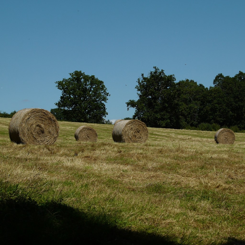 Walking around the edge of the green and past the village church, we made our way back out into the countryside, passing by a few hot sheep. Continuing steadily downhill, we came across a few dragonflies and butterflies, followed by three horses. At the bottom of this slope, we reached a small gate, where the path noticeably turns, and here you can practically pinpoint the moment where you begin to turn back in the direction of Cranbrook. Having just gone downhill, the path naturally then goes upward. For some reason (the pub), this first section after the break always catches us a little bit, and by the time we had ascended back to level ground, were a little sticky and out of puff, despite stopping to admire the collection of large round hay bales spattered across the field.
