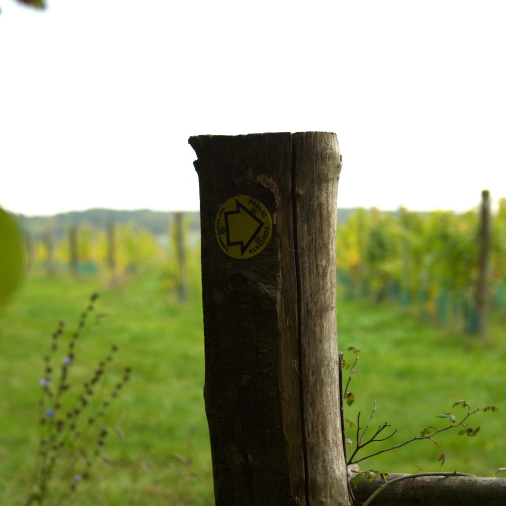 We made our way past the church along a private driveway past some very nice houses and back out onto the continuing vineyard beyond. Through the field we noticed that sheep were living and grazing amongst the vines, helping keep things under control and giving the flock a nice environment to spend the season – a win-win! The vineyard stretched on across the top of the downs for quite some distance, each patch having its own sign to indicate just what alcoholic beverage it would ultimately be turned into, which was cool. This area was so long and wide that we suddenly felt quite far out in the countryside, hidden from the surrounding world. After passing a herd of long-horned cattle, the path led us through the middle of a final patch of the vineyard, vines on either side, where Beth estimated about 50 million grapes were growing (unsure how accurate this was – it might be, who knows).