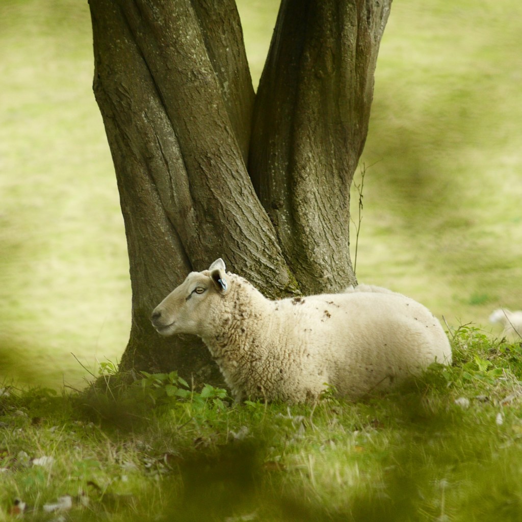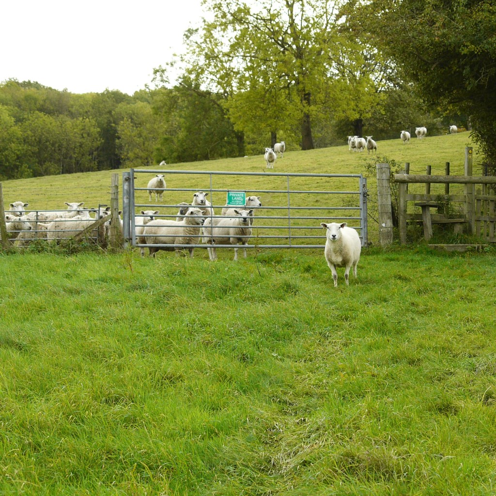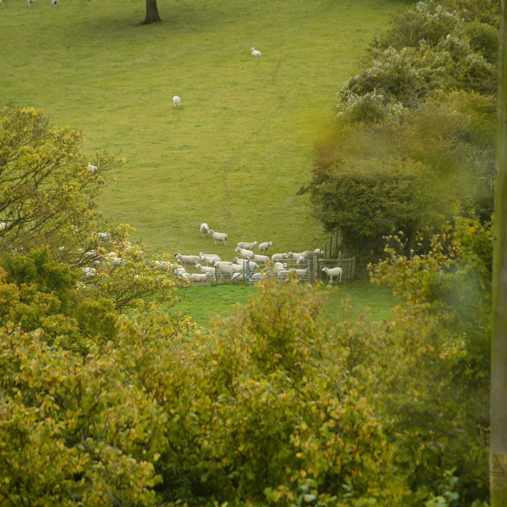 The route took us along the edge of some woods, with a very idyllic open field to our right, containing a spattering of trees and a large flock of sheep spread across the down. I think these were the same sheep we had spotted toward the start of the work, and we stopped to admire several contended-looking individuals on the way down. As we approached the bottom of the field, we spotted over the fence what looked like a single, solitary sheep on the other side. This sheep, whom Beth would duly name Jerry, quickly became quite significant, like the first pebble of an avalanche. As we crossed a stile into the field where Jerry grazed, we were certain that he should not be there, and had somehow got through the fence. We stopped to see what he was doing, at which point he too noticed our presence. He then decided to stop grazing and attempted to return to the correct field by presumably the same means which he had entered – this turned out to be a gap under the large metal field gate. Unfortunately, Jerry seemed to find re-entering the field tricker than leaving, and after sticking his bum in the air and failing to squeeze beneath, he gave up and turned back to look blankly at us – it was almost a request for help. However, by now some of his fellow sheep had noticed Jerry’s presence in their neighbouring paddock. They began to trot over to investigate, baa-ing insistently. This got the attention of other sheep in this corner of the field, who in turn came over to have look. This effect then rippled out, at actually a rather shocking speed. Before we knew it, we could see sheep running from all corners of the fields over distant parts of the hillside. The entire herd gathered about the gate, as Jerry continued to blissfully munch on the luscious grass which he had all to himself. Obviously, this was a very interesting and funny spectacle, which I was keen to stay and enjoy. However, it wasn’t long before I spotted another member of the flock tentatively slide her head under the gate inquisitively. Fearing a mass breakout was imminent, it was at this point we turned tail and promptly left the field and the flock behind, disappearing into the cover of the awaiting woodland beyond. We climbed upward, a few minutes later finding a point where the trees thinned to the side and we could poke our heads out. From there, we could just about make out the scene of the incident. The herd were still very much gathered about the gate, with Jerry resolutely on the other side – fortunately, no mass breakout had as yet occurred. Whether it did eventually happen, or Jerry managed to make his way back, we can’t be sure, but very much hope that things worked out for the best! We turned, and left the flock to their sheep business.