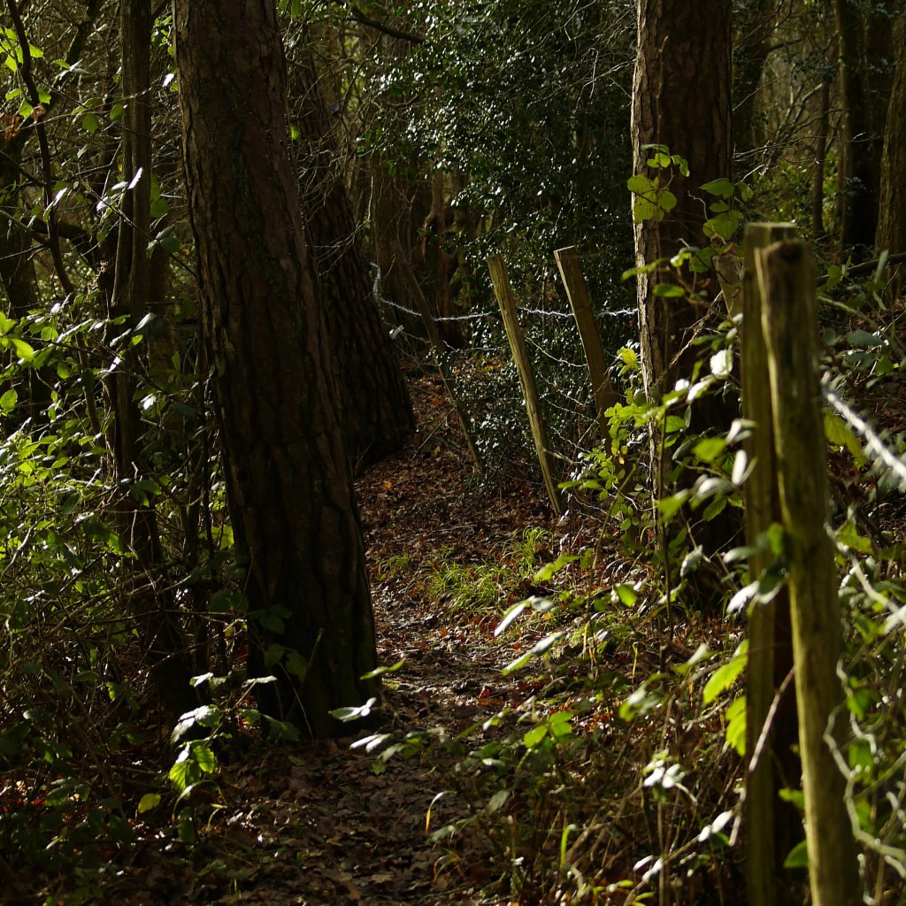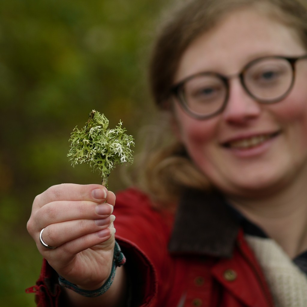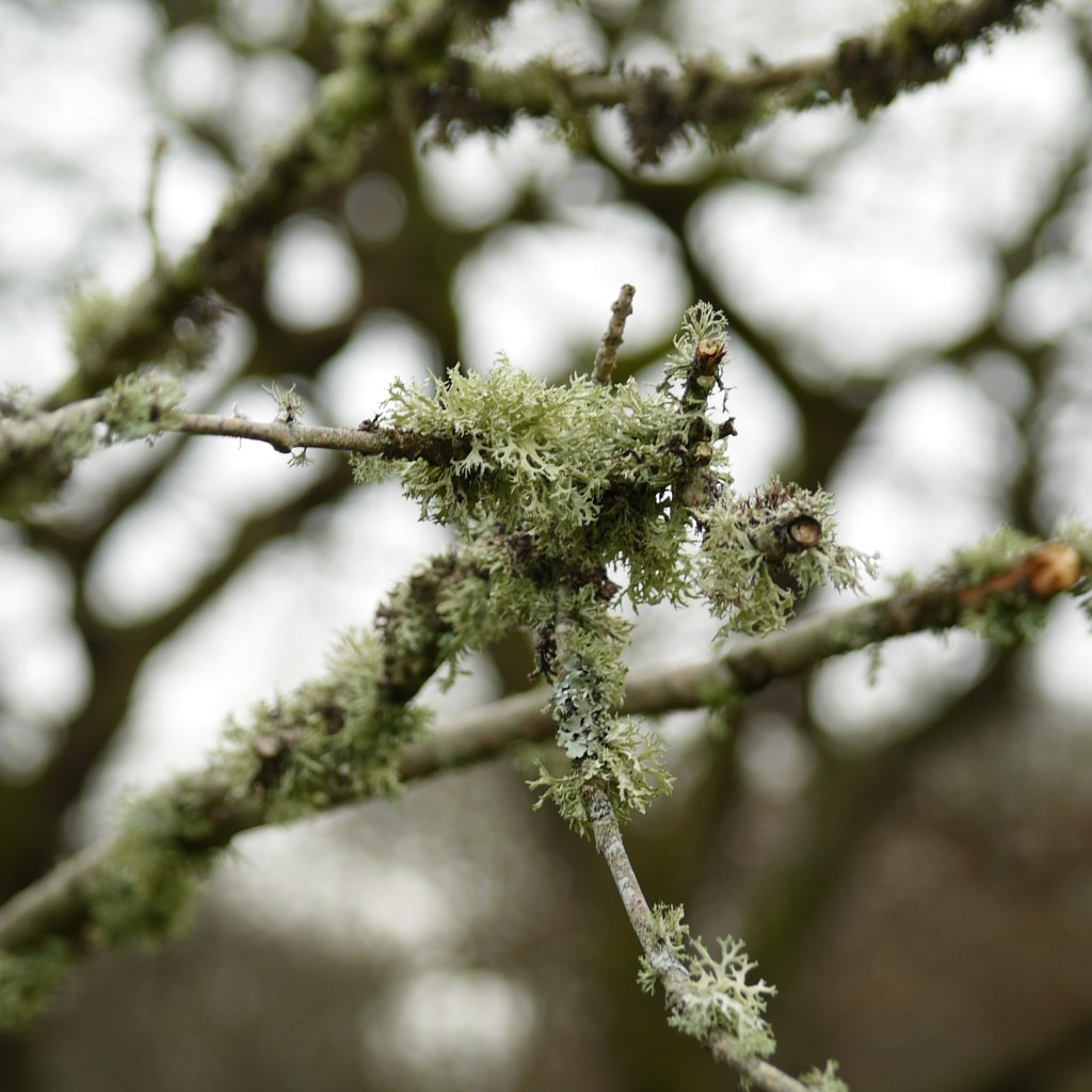 Nonetheless, it was a fine day, with hints of blue sky above, and the mud, for now, was not too terrible. We descended through a couple of fields before picking up a track running alongside a trickling stream. Soon after we took another footpath to the left, which began to take us steadily uphill for a short distance across another field. On the other side, the route took us past a fallen branch, the tips of which were covered in fluffy green lichens, which Beth of course loved. However, as we admired it, we couldn’t fail to notice the awaiting path forward. The mud had suddenly got much, much worse. We entered the small patch of trees, boots squelching through the bramble-lined footpath. Both of us hoped that this would improve soon enough, and it did!