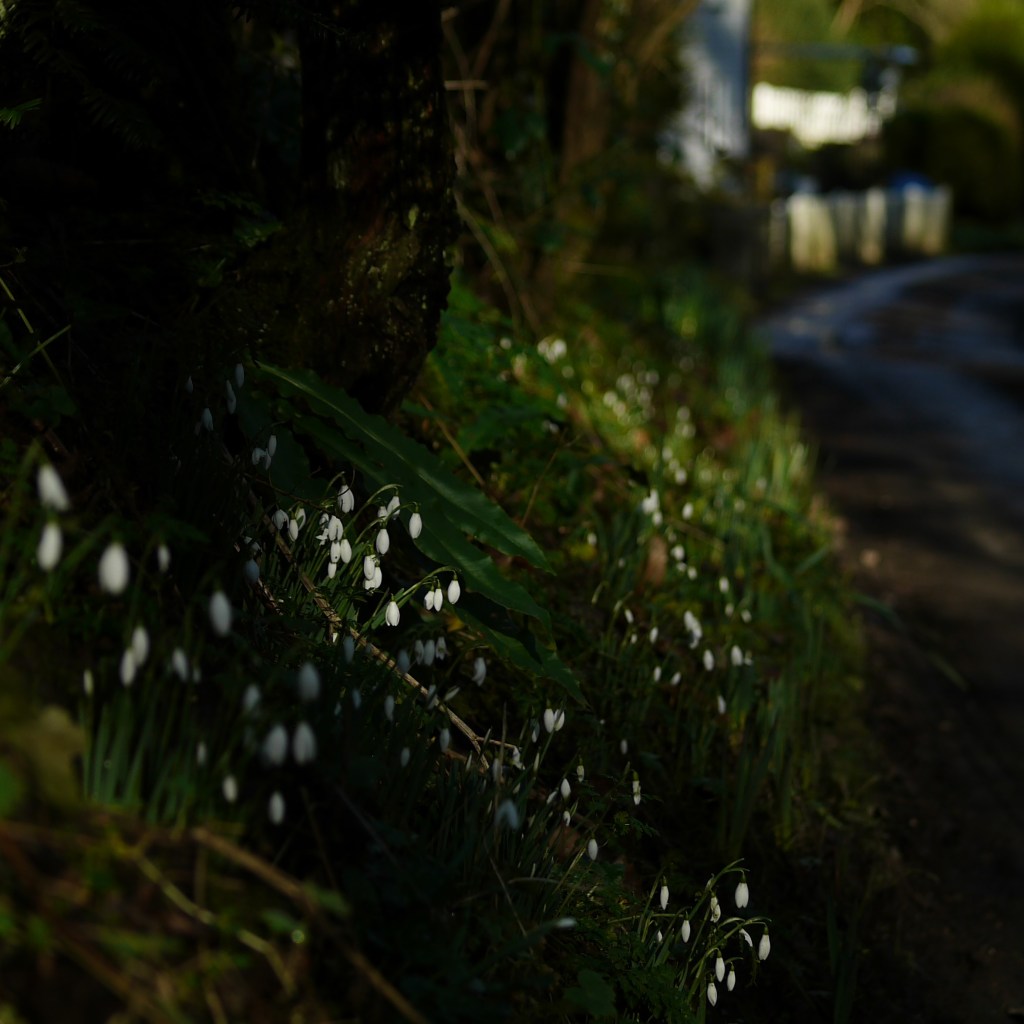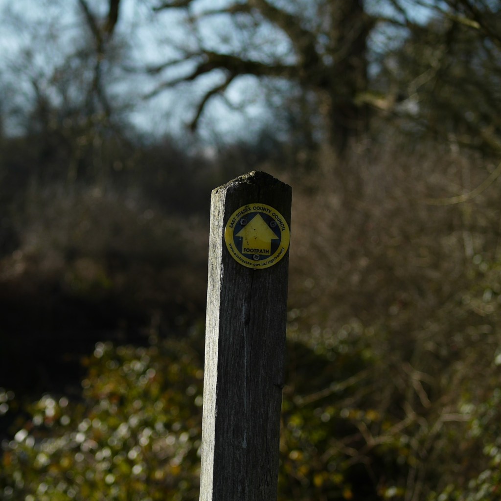 On the other side we carried on downhill along the edge of the trees, cautiously enjoying the effect of the water channelling its way through the earth we walked over. We crossed over another stream at the bottom, and walked back steeply uphill on the other side. This brought us out to a road, and we turned right into the hamlet of Motts Hill. Here we found a smattering of snowdrops, and the small settlement was one of the pleasant surprises of the day. There were only a handful of houses, and either there was a quirky culture, or just has one seriously quirky resident. During our brief time in Motts Hill, we spotted a wooden chap sitting at the side of the road, a shack and bicycle straight off the set of Death in Paradise, and a mannequin in a high-viz jacket and hard-hat, standing beside a chalkboard with the names of all the local pot-holes, which included a QR code taking you to a sight where you could rate them all out of ten!