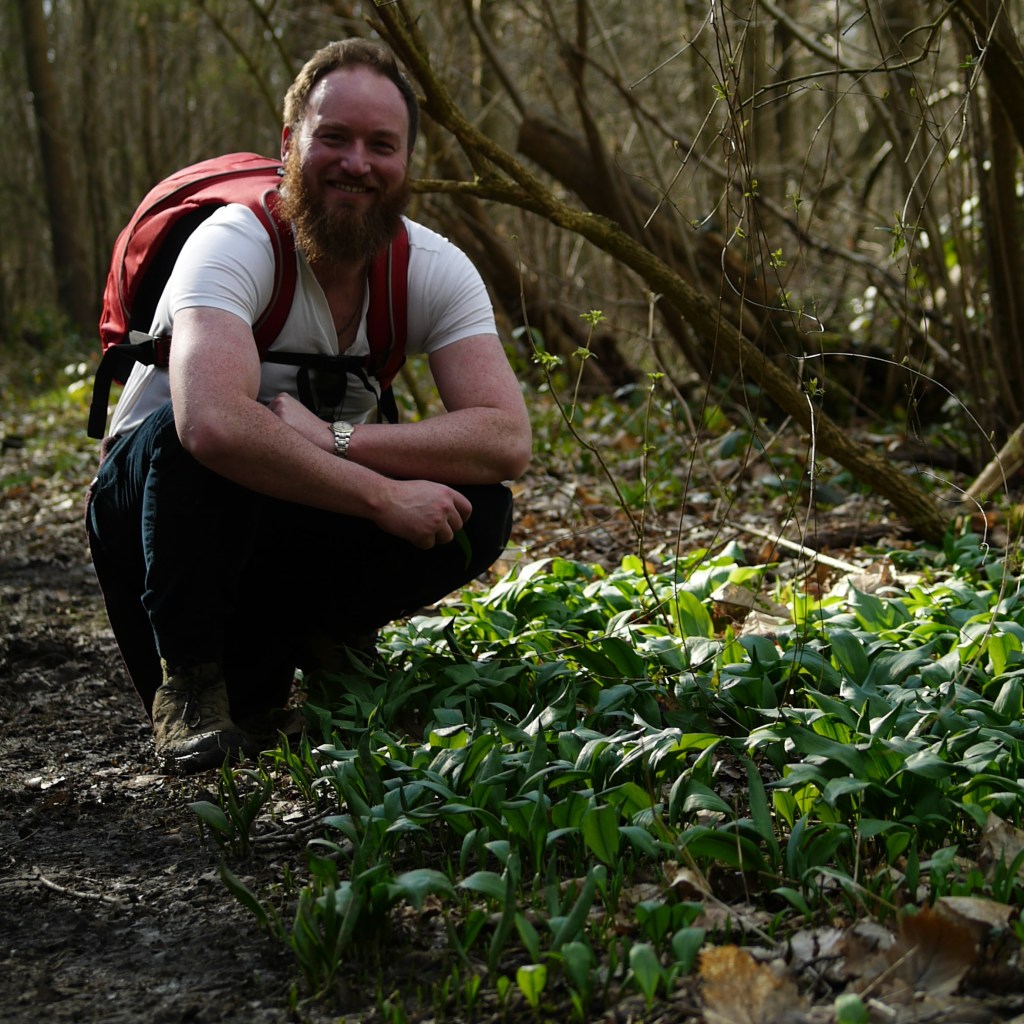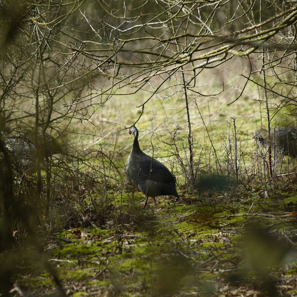 A little around the corner we arrive at a road which we had driven up that morning. This was the trickiest road crossing of the day, as the road is fast and required us to walk around a bend to get to the next path. Fortunately, visibility wasn’t too bad and there was enough of a verge to stay off the tarmac, so we made it across and all was well. On the other side awaited a woodland, and we found a spoon wedged behind a way marker reflecting our adventure, as well as the first truly muddy paths of the day, although they were easily navigated. We made our way past thousands of green sprouts poking through the litter of leaves, promising the bluebells to come, before the trees gave way and we arrived at something peculiar; a tall, metallic fence running around a large area, with an electrified wire at the top. The footpath however went right through, and so we opened the door and entered the paddock, unsure what was going on. The mystery didn’t last long however, as after leaving through the opposite gate Beth read one of the signs which explained it was to protect hens, and crucially to keep the foxes out. This was good to know, as a minute later we arrived at another, larger fenced area, only now we crossed it without worrying. Sadly there were no hens to be seen, and we were soon on the other side. We stopped for a drink, before leaving the field and entering our next patch of woodland. So far, this route had had plenty of way markers and been very well kept. It came as a surprise therefore, when this next section turned out to be muddy and overgrown, with several trees across our path which required ducking low. This was the only part of the day where water entered my old boots, and I quite enjoyed the bushwhacking! We made it to the edge of the trees where one last obstacle awaited us, and we had to swing our way through an old gate which could just about support our weight.