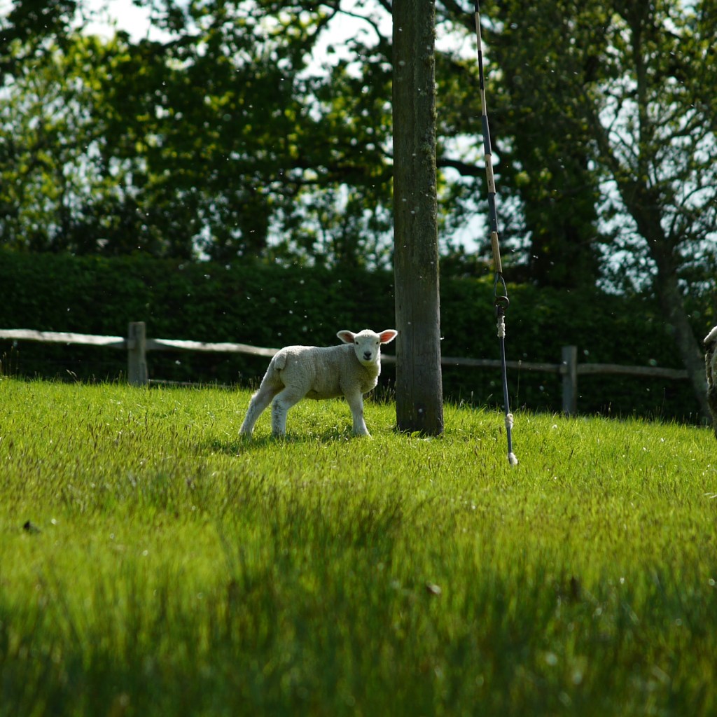 Once we were back on course, we picked up a footpath which took us past another barn where swallows swooped about (summer is coming, folks). We came back out to a road, along which we found another small field of lambs – thank goodness, I had begun to get withdrawal symptoms. This road eventually gave way to a byway lined with cool roots and mosses, which then brought us out to the busiest road of the day. We crossed over and walked along the verge (sheep in the distance) and a minute or so later left the fast road behind. We were very much on the way back by now, and began our final series of footpaths by entering a field on the left. Guess what it contained? I don’t even have to say it, do I? At the bottom of this field, we again found a lamb on the wrong side of the fence. Unlike the first, it didn’t wriggle back beneath and continued to bleat at its mum, who was bleating back somewhere amongst the field the lamb was supposed to be in. As we approached, it looked at us for assistance. We would likely have helped, apart from the farmer was at hand, and he assured us that he would eventually find his way back in. Last we saw, he was investigating the gate beneath which he had snuck, so hopefully he did make his way back to his awaiting mother. Only a minute further on, and we came across our next lamb encounter. This time it was four lambs on the correct side of the fence, showing great interest in our presence. I wonder if they may have been bottle fed, as we were able to kneel down and even pet them a little without them running off.