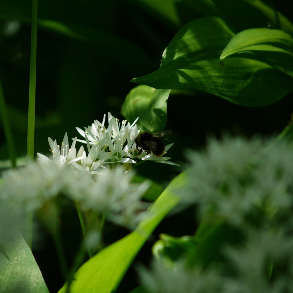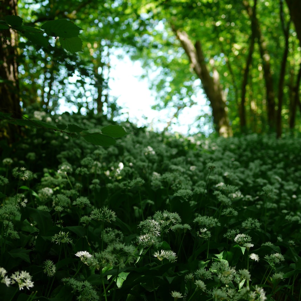 After this we entered another small wood, where we had managed to get lost a couple of times before. Of course, we know what we are doing now, so no such problems on this occasion. Our choice to try this one in spring however, was very much rewarded even further here. Last time, we noted a faint waft of wild garlic and wondered if there was a good colony that grew here in springtime. Well, we were right, and there is! The bloom of delicate, white-starlight flowers stretched out of sight through the undulating woodland. What’s more, I could smell their scent clearly for the first time this year, much to my relief. We enjoyed making our way through the extended colony before coming out for the next passage of farmland. We soon came across our usual lunch spot, but having eaten our ice cream less than an hour before, decided to press on.