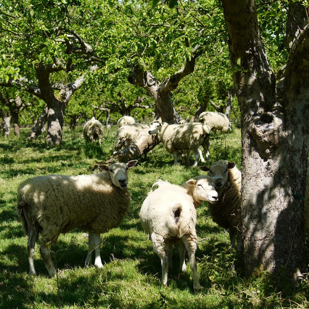The next stretch across the orchard was familiar as ever, although it was too early for the apples to be shining from the trees. One difference this time was that we stopped in the farm shop across the road for ice-creams, as it was such a warm day. Beth had pistachio flavour, and I had mint choc-chip, and we ate the refreshingly cold treat gratefully as we carried on toward Kent college. On our way up the hill, we again found a normally empty field full of sheep and lambs. We then turned to walk across the field in front of the college, which always contains sheep, and were pleased but not entirely surprised to find an abundance of lambs. We spent a few minutes in this field enjoying the scene, with many of the flock choosing to spend their day in the shade beneath the trees; apart from 33, who seemed to have lost her lamb – we hope very much that she has found them by now!