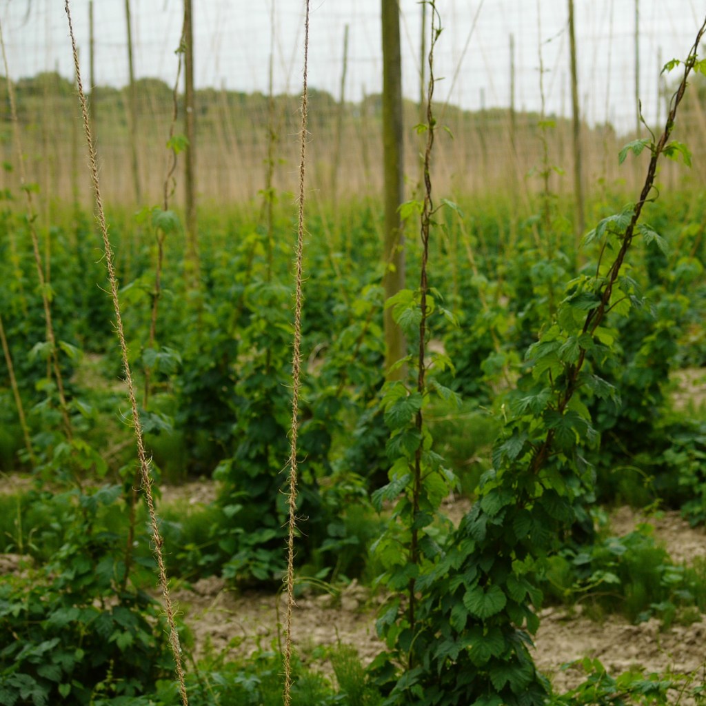 We crossed over a stile at the back of the castle grounds and began to head slowly uphill. The first half of the day had mostly been a gentle downhill stretch, and thus the second half would correspondingly be mostly upward. We walked between two fields of growing grapes, past a very posh horse place and crossed over a road a few minutes later. On the other side we saw a couple more fields of lambs, climbing still up along the quiet lane, at the end of which we found a robot lawnmower bumbling diligently about (what an age to be alive). From there we were back on footpaths and passed through a small patch of woods where we spotted a few remaining bluebells and wild garlic – unfortunately, these will soon be gone for another year. We continued along a series of paths across farmland and back over the Kent ditch. From there, the path again climbed through a field of growing hops, onto a track (where Beth confidently said “a quick left right”, re-checked the instructions and sheepishly went left right instead), past a farmer in his tractor and then turned up the steepest slope of the day. This began with some steps through woods and then opened up onto a wide field, bringing us back up onto the high land that had started the day. Here, we accidentally went around the edge of the field rather than across (the path was obvious when we looked back!), before dipping down a bank to bring us back onto the road. We then followed the road upward, and eventually back to where we had left the car earlier in the day.