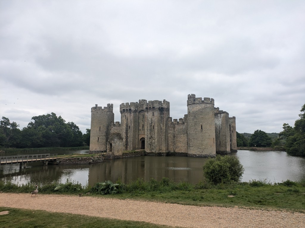 At about half past eleven we arrived in the middle of Sandhurst, and only then did we realise the walk began in Sandhurst Cross. A few minutes later, we were in the correct place and parked up in the free church car park ready to go. We followed a hard track out between two fields before turning left along a clear, cross-field path. A stiff breeze blew over the high point of the weald as we crossed a fairly bare stretch of farmland. The first point of note came in rather an unexpected form, when we made our way along a driveway lined with loads of disused Land Rovers. Seriously, there were so many, and whilst some may have been salvageable, many were definitely being claimed by nature. Land Rover graveyard behind us, and we made our way past a herd of cows and across a series of canal-lined pastures, one of which was apparently the “Kent Ditch”. From there, we picked up a very clear gravel track, which took us all the way to a familiar spot – Bodiam Castle.