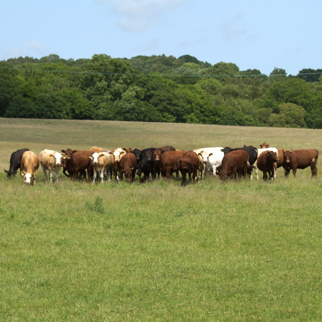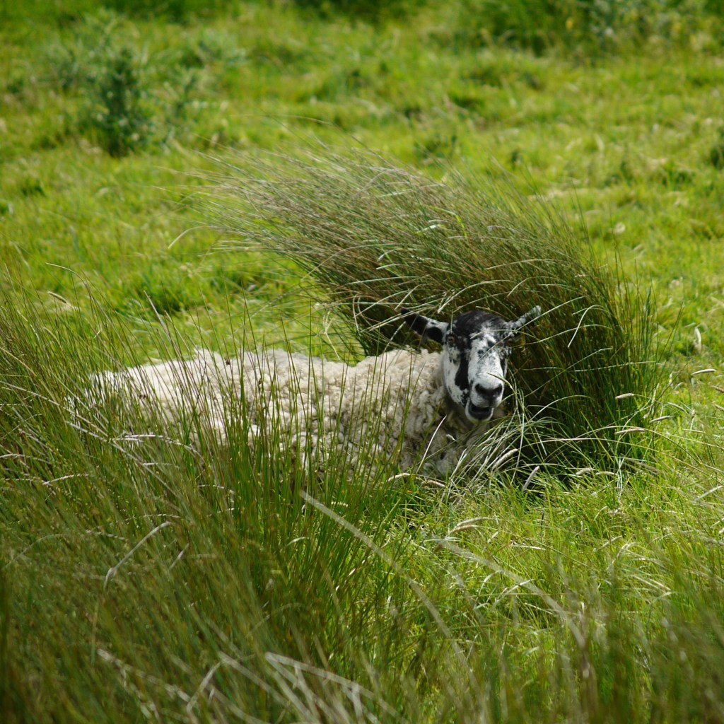 Excitement over, and we continued steeply upward toward Brede. The day suddenly felt very hot and I was grateful for the breeze still blowing in from the sea. The climb was well worth it however. Behind us were excellent views of the valley we had just walked through, and at the top we found Brede Church and its beautiful daisy covered graveyard. Beyond this we reached a road, which was both the busiest and longest of the day. It also wasn’t paved the whole way either, and we crossed to use grass verges a couple of times before reaching its end. This did lose the walk some points, however as the rest had been so lovely, we agreed that it was certainly not a deal breaker. Soon enough we crossed a bridge back over the river Brede, and crossed a stile through a thick hedge to our left. On the other side we were pleased to find ourselves in more pleasant surroundings once more. The route continued along the edge of the river, which was littered with lily pads and bright yellow flowers. To our right were more sheep, the flock continuing up and over the hill rising up toward the blue sky (it was around here that Beth claimed that she “reckoned she could take a sheep”) and to our left across the water we also spotted another herd of cows. These were much more chill, and a lot easier to appreciate from the opposite bank! We followed the Brede until it turned left. We instead turned right along the “Doleham Ditch”, taking a path through thick, and somehow slightly sharp grass. It was perfectly usable, although didn’t feel overly trod, and we enjoyed the slightly rugged feel. A few minutes further on we found another wooden bridge, and crossed over. As we approached the day’s final climb, we spotted across the field to our right what looked like a large, horned bull. We confirmed this with Beth’s camera, and so doubled back to walk a little further along the waterway for a better look. The herd turned out to contain several bulls, a couple of which had very impressive horns – in fact these may have been the most “bull-like” bulls we had every come across. We also appeared to have disturbed something in the long grass, as we found a small, freshly decapitated mammal of some kind, blood staining everything it touched – this confirmed our “less-used” guess!
