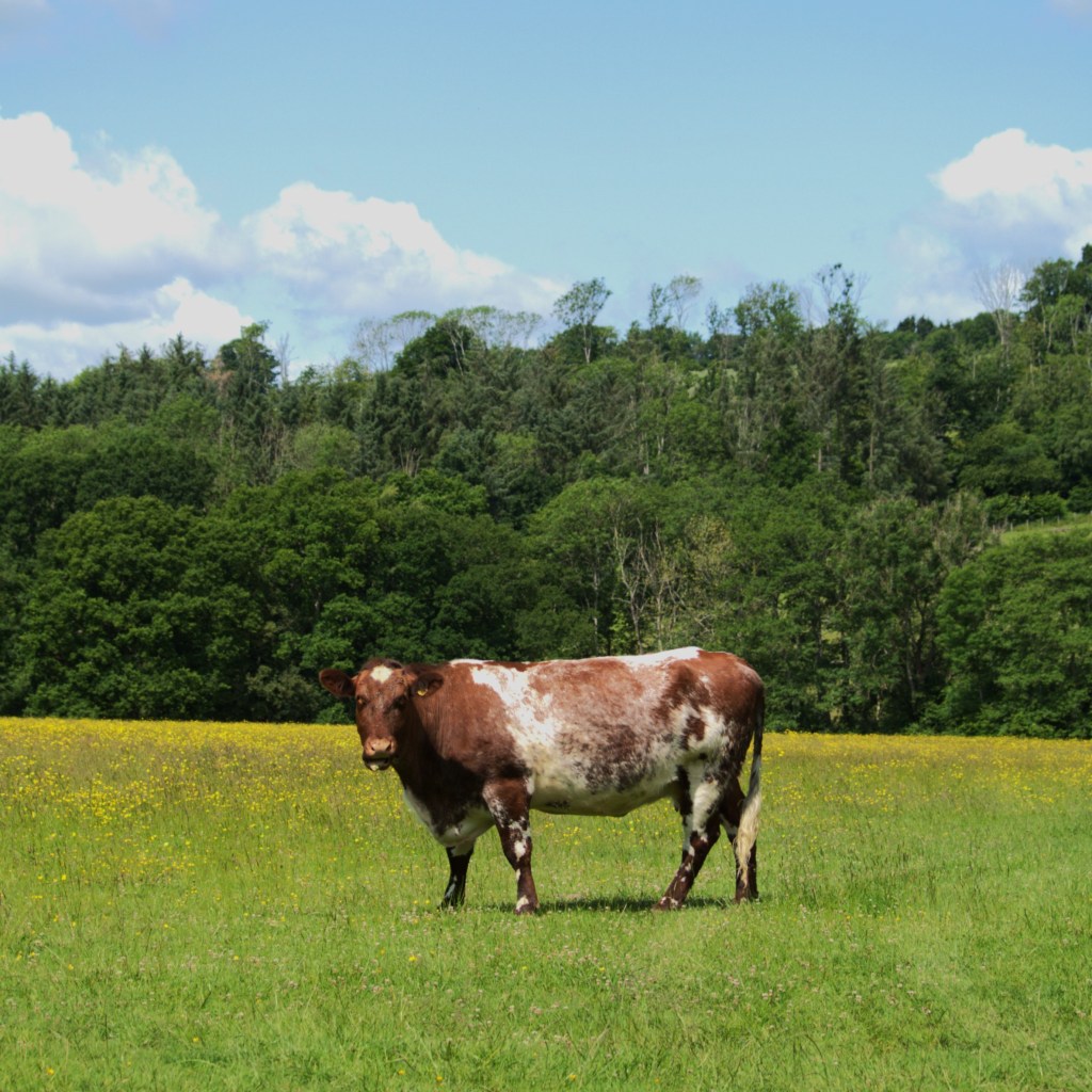 We walked through the middle of the small village, past the pub, a house called Great Butts Cottage (Beth was quick to point this out) and then off down Butts Lane. The long, quiet lane led us down past foxgloves, a patch of sad-looking Wild Garlic and some sheep, as Chiffchaffs and Tits serenaded our passage. We were soon brought once again to the shores of Bewl Water. The day began to heat up as we walked along the water’s edge for a short distance, before taking our leave over a stile onto the farmland beyond. Here, we paused so I could de-jumper and apply sun cream and then continued on our way. This part saw us return to a stretch we had visited three months previously, and beneath the sunny sky we found it to be as pleasant as before. Sadly, the bull was away in the barn, but we still spotted a couple of happily grazing cows and some recently shorn sheep.