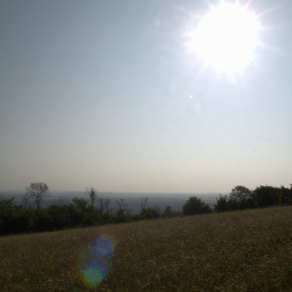 All too soon we could see the edge of the woodland once more. Before us the path descended through another field of golden crop, which being downhill wasn’t so bad (there were even some chickens at the bottom). However, once we had reached and crossed the road with an old Norman church on our left, we found ourselves staring up at the climbing path that was to be our next challenge. We had spotted it from a distance, and had looked like an intriguing path, however perhaps not on such a searing-sun kind of day. We plodded up the chalky path, stopping at regular intervals to admire the view behind us, as several large birds circled ominously overhead. The gentle breeze did little to ease the sweat, and we finally made it to the top with a sense of relief, knowing that the day’s climbing was over. Even greater relief came when the path left the field edge and diverted back into the shade of the trees for a while. The remainder of the route was a combination of cool, tree lined paths with occasional meadows opening up onto the same type of view to our left that had blessed the start of the day. We eventually arrived back at Lambo corner, descended back down the path toward the carpark, which we managed to overshoot. Retracing our steps up our short but steep mistake, we finally arrived back at the car about three hours after we had left.