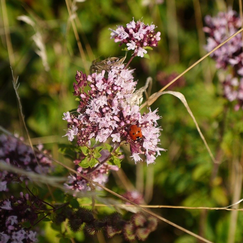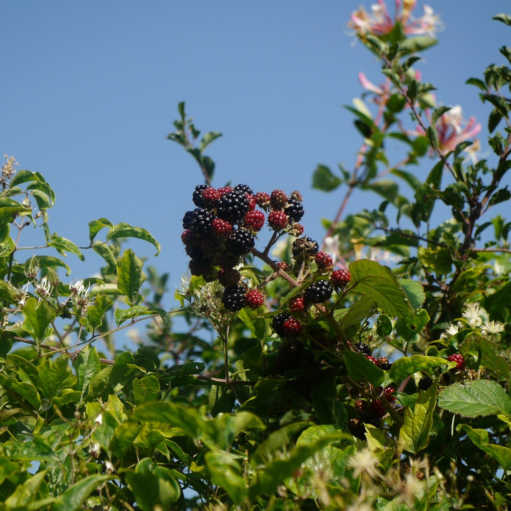 The starting point in question was Duncton Hill Viewpoint. As the name suggests, the spot offered immediate and beautiful views of the day dawning across the countryside below us. We headed off out of the car park along a footpath which took us around the outside of what we refer to as “Lambo Corner”, so called because a few years back a Lamborghini test driver stuffed his car through the crash barrier. Safely passed this apparently tricky curve, we crossed the road and entered a large, undulating arable field. Over the last few years I have driven down the road going through the centre of this particular walk, admiring its beauty and imagining walking through it. I was delighted to finally find myself making my way through, as the sun glinted off of the sweeping golden crop. We headed upward through the middle, skirted around the top edge and crossed through a small patch of trees, into a scrubby meadow, decorated with flowers. We continued alongside hedges heavy with berries, commenting on how much the bears would enjoy them (side note, it is rather nice to no longer be walking around scanning for any bear activity), before arriving at a descending chalky track. This was lined with flowers and butterflies, and again had great views off to the left, however was a little loose underfoot, and so required small, careful pigeon-steps in order to navigate without falling over. Shortly after we passed a horse and rider a long section of footpath where I continuously collected spider webs on my face and arms, before arriving at a crossroad of pathways. We stood in the shade to check the map. Naturally, the route led us up the long, rising sunny path, on a morning which was already getting hot, despite the relatively early hour. We therefore paused, re-hydrated and sun creamed, before continuing on our way.