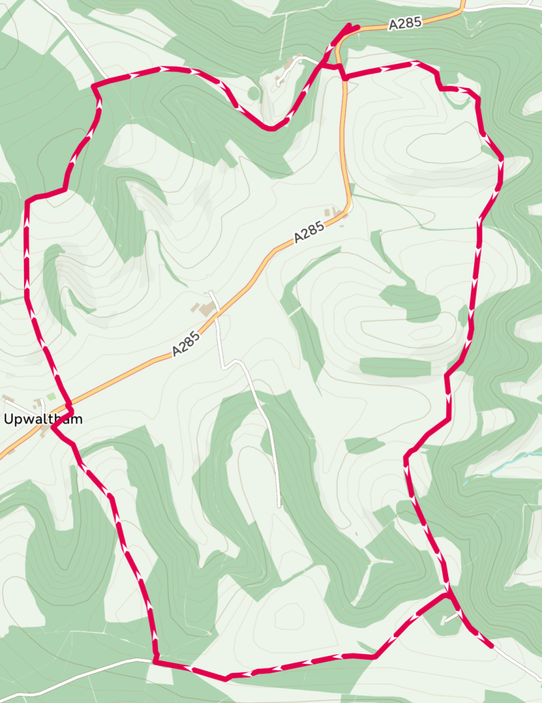 Not long after, we reached bag-swapping time, at which point we smelt, and the saw, our first beasts of the day. The cows made their way hesitantly in our direction, probably wondering whether we were bringing them breakfast – sadly, we were not. We continued to steadily rise, and eventually came across a familiar sign; Bignor Hill. We had gone on a walk from Bignor Hill the previous summer, and were both surprised to have stumbled across it once more. We walked a little way along the footpath in its direction until the familiar hilltop came in to site, before turning back and rejoining the day’s route – it is always nice to join the dots! Just after this, we passed a second, larger herd of cattle, all happily grazing away their day beneath the clear blue sky, before five minutes later encountering a deer, who popped her head out of the hedge, spotted us and promptly turned around and legged it. The day was hot now, and so arriving at a section of woodland certainly came as a treat. We walked amongst its cool shade, noting how much thinner the foliage beneath was than that of the wilder Canadian forests. The initial path wasn’t quite where the map said it would be, as woodland trails often are, however this was easily solved.