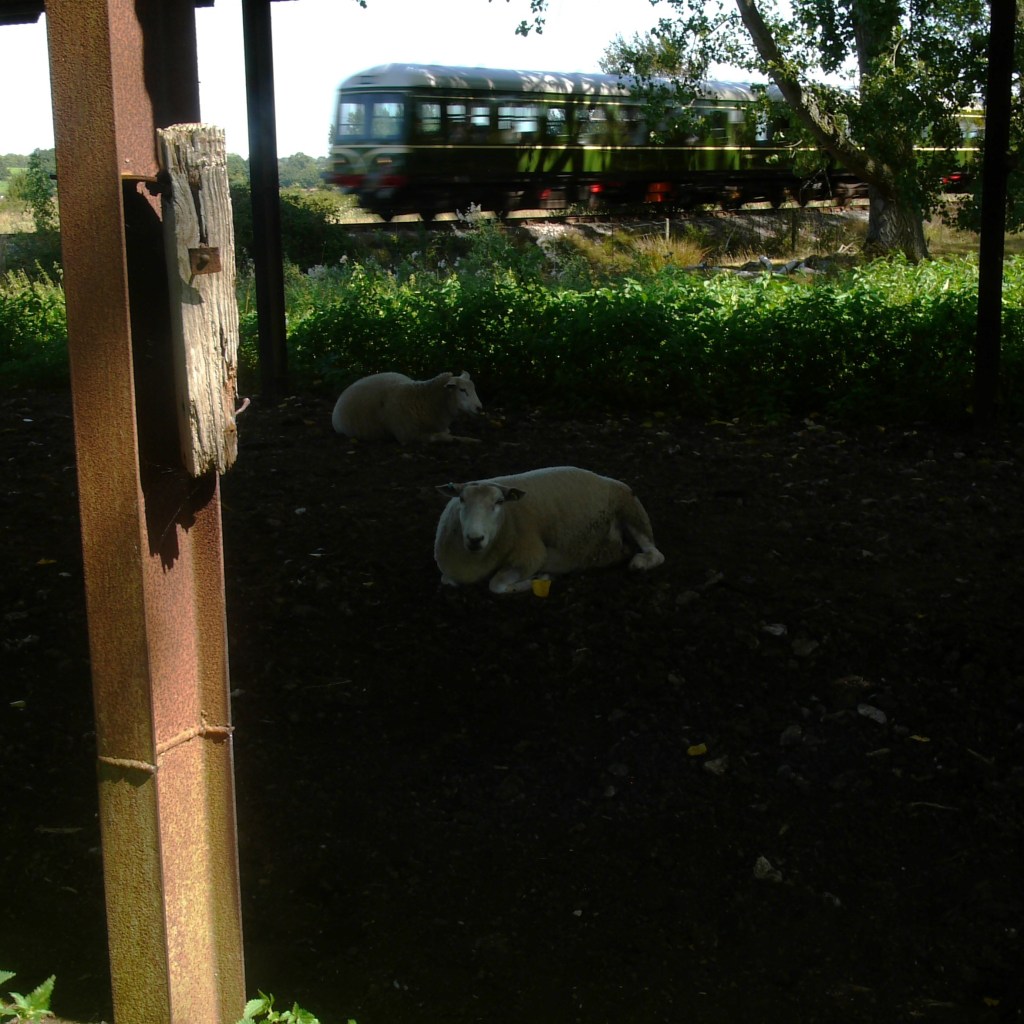 Eventually we came out at our next road crossing and picked up another footpath on the other side and to our left quickly after. We descended through further fields before turning right into another orchard. This one was a little different, however. It seemed feral somehow, less well-kept and as if Treebeard would be lurking somewhere within. In short, it was cool, and the thick apple-dotted canopy welcomed us in and suddenly we found ourselves in a twisted world of green. Unfortunately we did not find Treebeard, but within we stumbled upon a wild tractor who seemed rather startled at our appearance, as well as an arrow pointing to an intriguing side-quest marked as ‘Box of Rain’. We emerged on the other side of this enchanted place and finally I triangulated our location and worked out where we actually were. In my head we had set off clockwise rather than anti-clockwise, and it was only when we spotted Bodiam Castle through a hedge a little to the north of us, did I realise my mistake. At that point I also worked that we were about to come out right onto the Bodiam Circular, and that we were currently standing on the path we had almost taken in error the first time we had done the route! And so a little over four years later, we finally crossed the stile, onto the road into Ewhurst Green. From there, we made our way down through the sheep fields we normally ascended – it was nice to approach the castle from a different direction. In fact, I was actually relieved to be going down, rather than up, in the heat, and once at the bottom we paused to say hello to some of the sheep sheltering in the disused barn, just as an old steam train trundled past us. Before long we were re-crossing the Rother, and entering the grounds of Bodiam Castle, one of our most utilized lunch spots. We sat off to the side of the castle, in the shade beneath a tree and refuelled – the ducks appeared too hot to make an appearance that day. We decided on this occasion to bypass the Castle Inn, despite it being one of our favourite pubs, as we instead wanted to try out the pub we had spotted back in Salehurst. We did however treat ourselves to a couple of ice-creams, which we slurped at as we set off again.