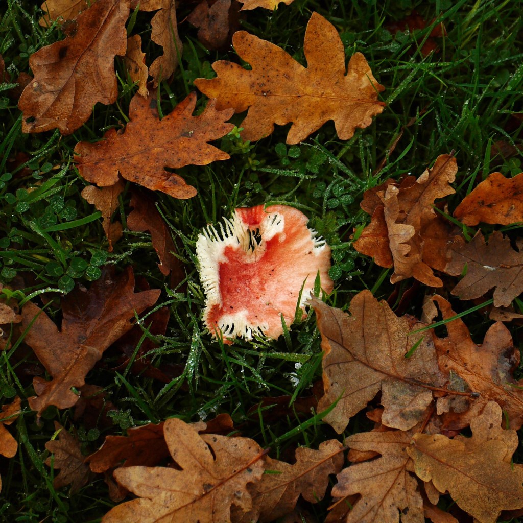 After recovering from this near-death experience, we made our way up a wide driveway, beautifully carpeted with a covering of orange leaves. We followed the familiar lane to where it met the final footpath of the day, through some trees, across another field and back over the railway. We then climbed the day’s final rise back up to the main road, and then walked down to the station and the awaiting car.