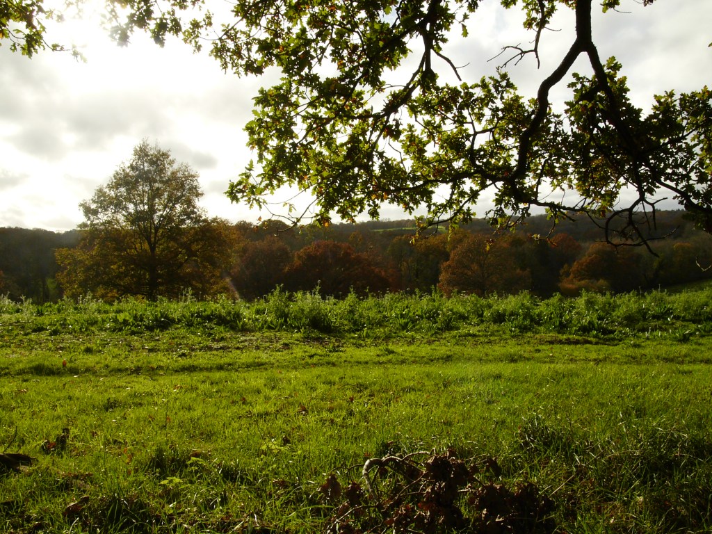 At the bottom of this field we entered another small patch of trees, in which awaited some stone steps climbing up the other side of the gully. These seemed to have not been as well looked after since our last visit, as they were somewhat overgrown and the handrail had fallen. Still, they were usable and we were soon back out into the open air and climbing up toward and ultimately through a farmyard. Out the other side we passed a beautiful old cottage, before continuing across the rest of the farm. At this point we were getting quite hungry. I had a lunch spot in mind where we had sat previously, however I couldn’t quite remember where on the route it was. Since our encounter with the skittish sheep, I had been saying it wouldn’t be far away. However, it must have been almost an hour later that we actually arrived, and only after several more rises and falls through glowing woods and stretching fields. It was all worth it however, as this is one of my favourite lunch spots. We sat down beneath a handful of large trees in the corner of a field which sloped away before us. We parked our bums on a conveniently placed and slightly mossy rock, just visible through the earth. The day’s sun had dried it nicely, and so we rested and ate our lunch, surrounded by the peace and quiet of the Weald, with only the faint rustle of leaves and distant bleats in our ears. Entire weeks come and go, and our lunch stops remain my very favourite moments throughout them all.