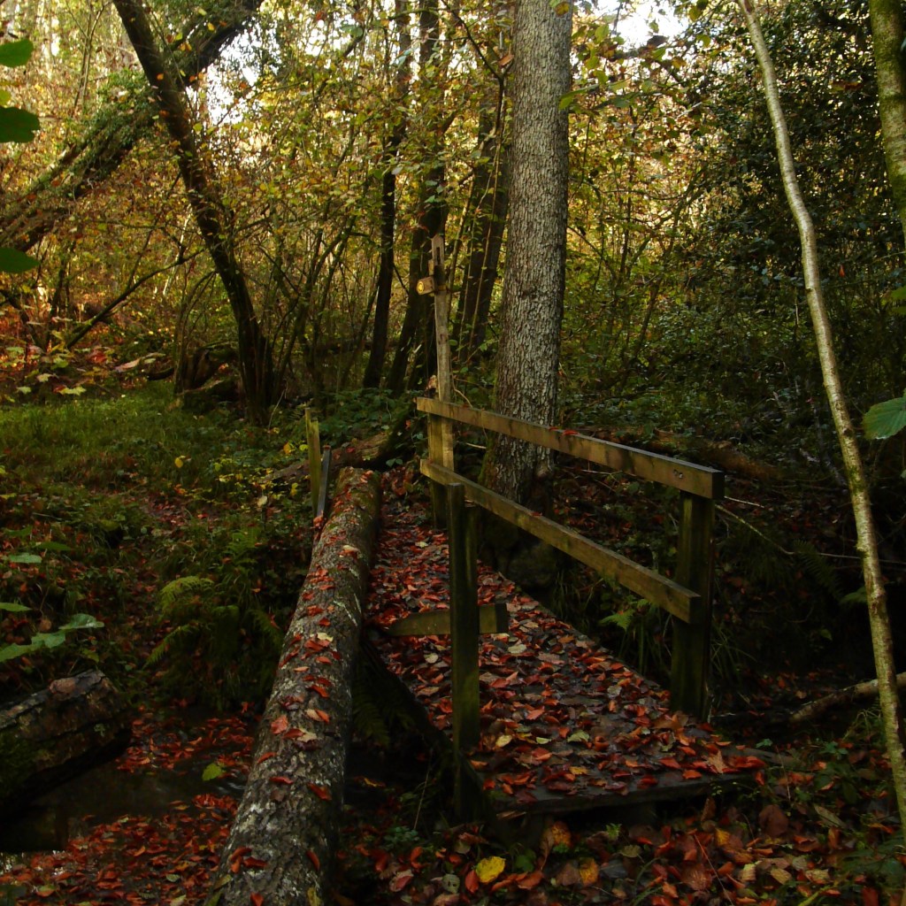 This was followed by a stretch of colourful woodland, where we spotted a couple of deer leaping through the crunchy leaves. On our last visit, I had managed to stack it through here, but I am pleased to say I stayed on my feet this time. We did however encounter another unexpected obstacle in our way. In an evidently recent turn of events, one of the trees had come down and crashed directly onto a small wooden bridge across a stream. The bridge itself was still in one piece, but there was clear damage, including most worryingly a large splinter in one of the most structurally integral bits of wood at its base. It also sloped slightly with the weight of the tree still on it, and with no rail remaining on that side, it did look a little precarious. I went first to test it, and it took my weight, meaning Beth was just fine. To be honest, I was hoping for a little more drama here, but no matter.