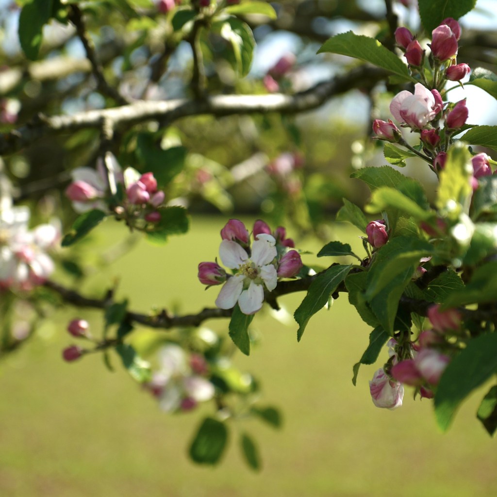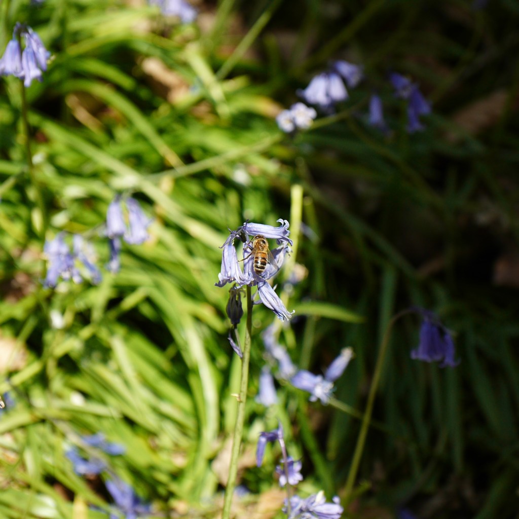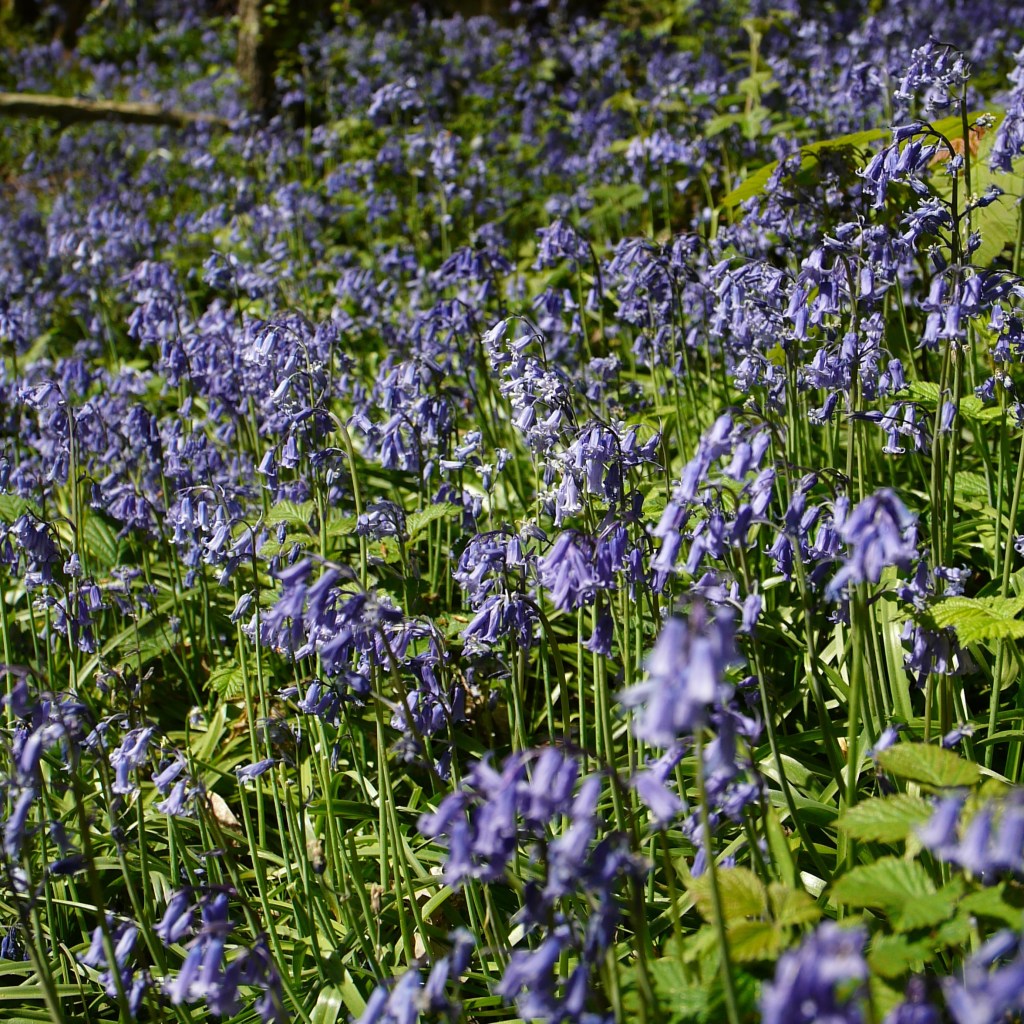 Having had an entire pint, Beth was tiddly and so decided to sing and dance to distract me from my sore feet as we got going again. The gravel track wore out as we left the last of the cottages behind, and we made our way through the middle of peaceful farmland beneath the dappled shade of trees lining our way. This brought us out to an avenue of blossom trees, before we crossed back into the grounds of Mote Farm, and an area they had left for Skylark conservation efforts – excellent! However, not to whinge, but here my right foot developed another complaint, which this time was an aching sole. Fortunately for my feet, we were not far from home now. We passed by a bright strip of dandelions and a small herd of sheep before descending another track lined with bluebells. From there, we walked along a flat path beside a quietly tinkling stream, which brought us back to Ightham Mote. We then climbed back up to the car park, where I gratefully removed my boots.