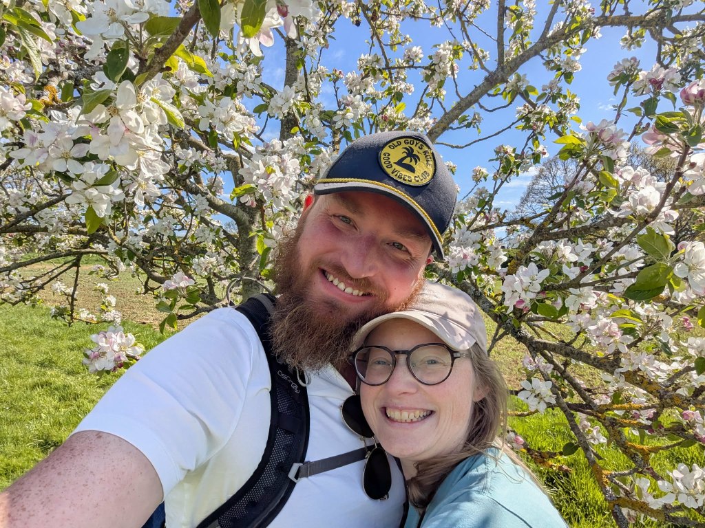 Turning our attention back to the walk, we headed up the road a short distance and then began to climb a steep set of stairs up the bank. As the steps wind up amongst bluebells and mosses and twisting trees, you could be forgiven for thinking you were about to stumble upon the magic faraway tree. Actually, what awaits at the eventual top is not far off. The path continues steeply through the trees and is a good test of your leg muscles. However, this is quickly forgotten and the extra effort is well worth it, once you cross a style beside a National Trust sign saying “One Tree Hill”. This little patch is one of the highlights of the walking calendar, and the reason we save it for April. We were going to do this walk next week, but as bluebell season is a couple of weeks early this year, we brought it forward, as not to miss them. Already, some of the bluebells lower down had begun to droop and dry, and we feared we may have missed our window. However, we immediately realised this was not the case. We walked along the ridge, covered in the glow of bluebells, taking it all in. It really is beautiful up there. We stopped for some refreshments on a bench, looking out across the countryside below, the sea of bluebells at our back; sitting together upon Kent’s Tanzanite crown, on a perfect spring day.